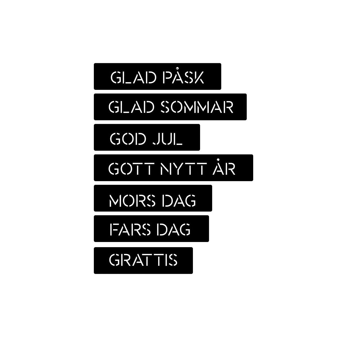 Set med dies där olika högtidstexter skärs ut i en avlång tag.