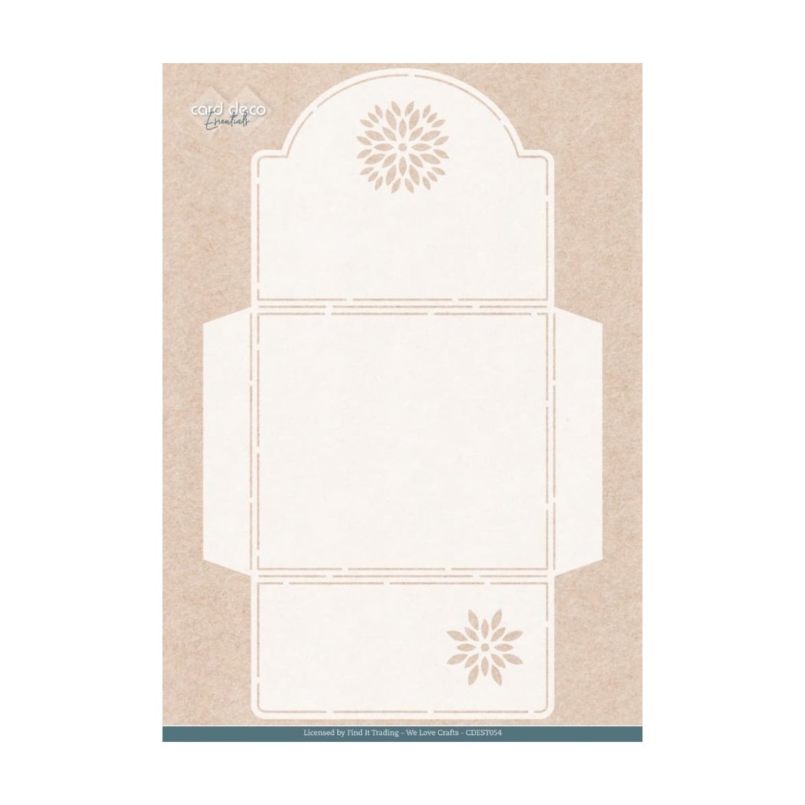 Stencil från Card Deco med ett mönster av ett kuvert med rundade hörn. Med den här stencilen kan du genom att rita av på papper och sedan klippa ut, skapa ett lyxigt kort i formen av ett kuvert. Arket är i tunn plast.