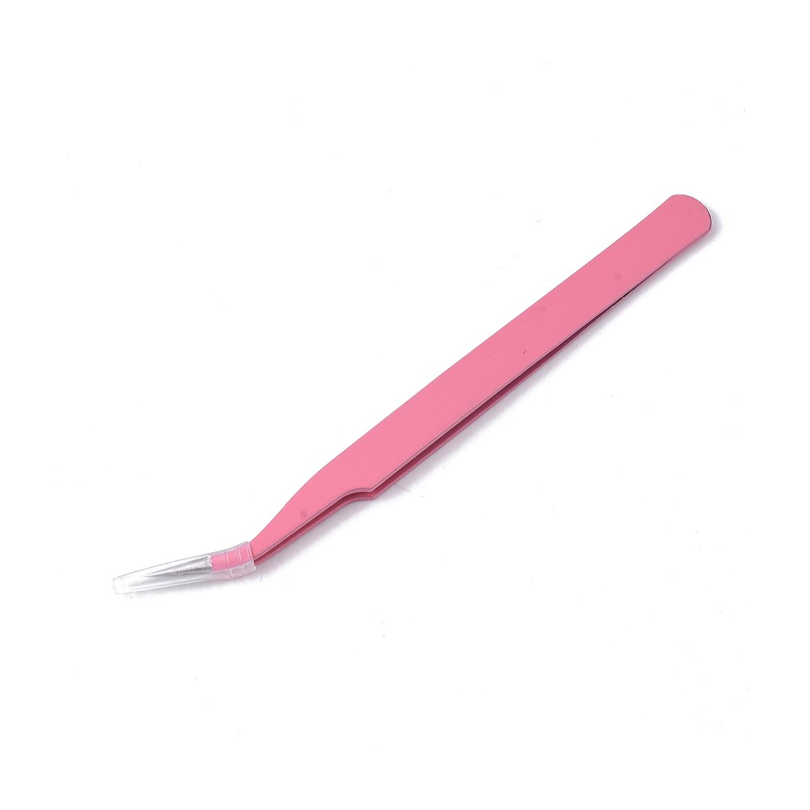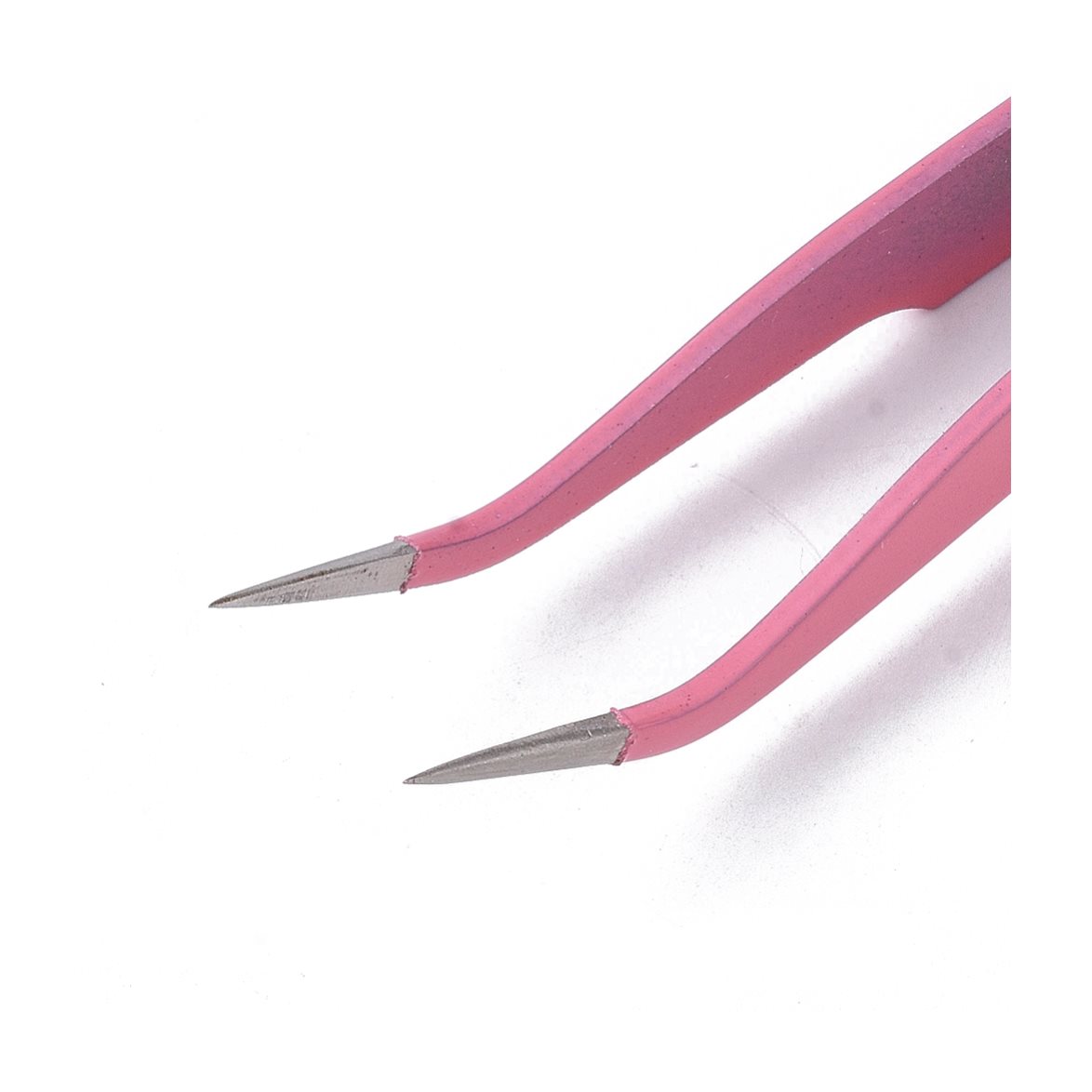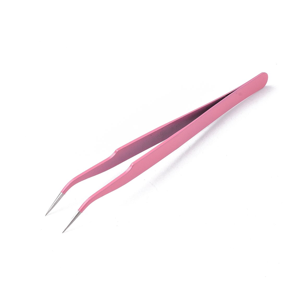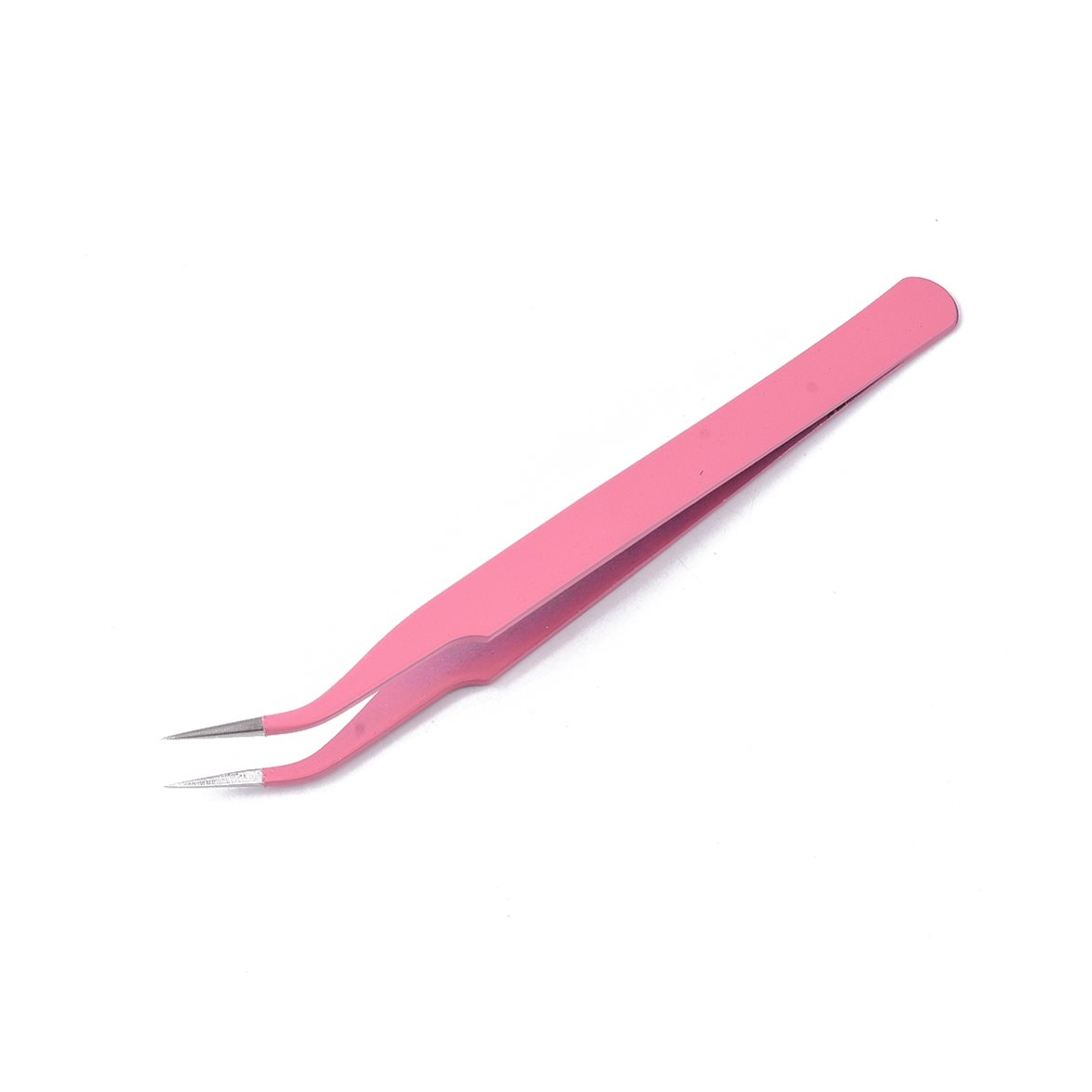 Rosa pincett i rostfritt stål med liten, böjd spets som passar utmärkt när du ska hantera små dekorationer, pärlor, stickers med mera.