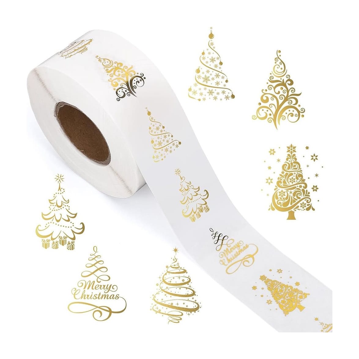 Här har du klistermärken med vackra guldskimrande julgranar.Passar utmärkt till ditt julpyssel och inslagning av julklapparna.