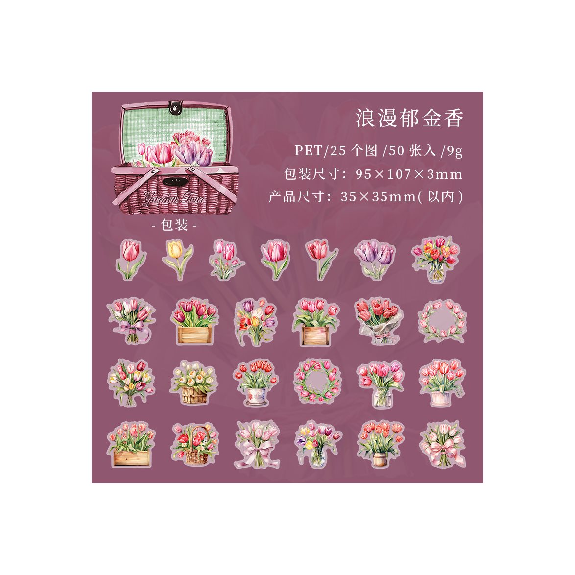 Ett vackert set med transparenta stickers med motiv av tulpaner.