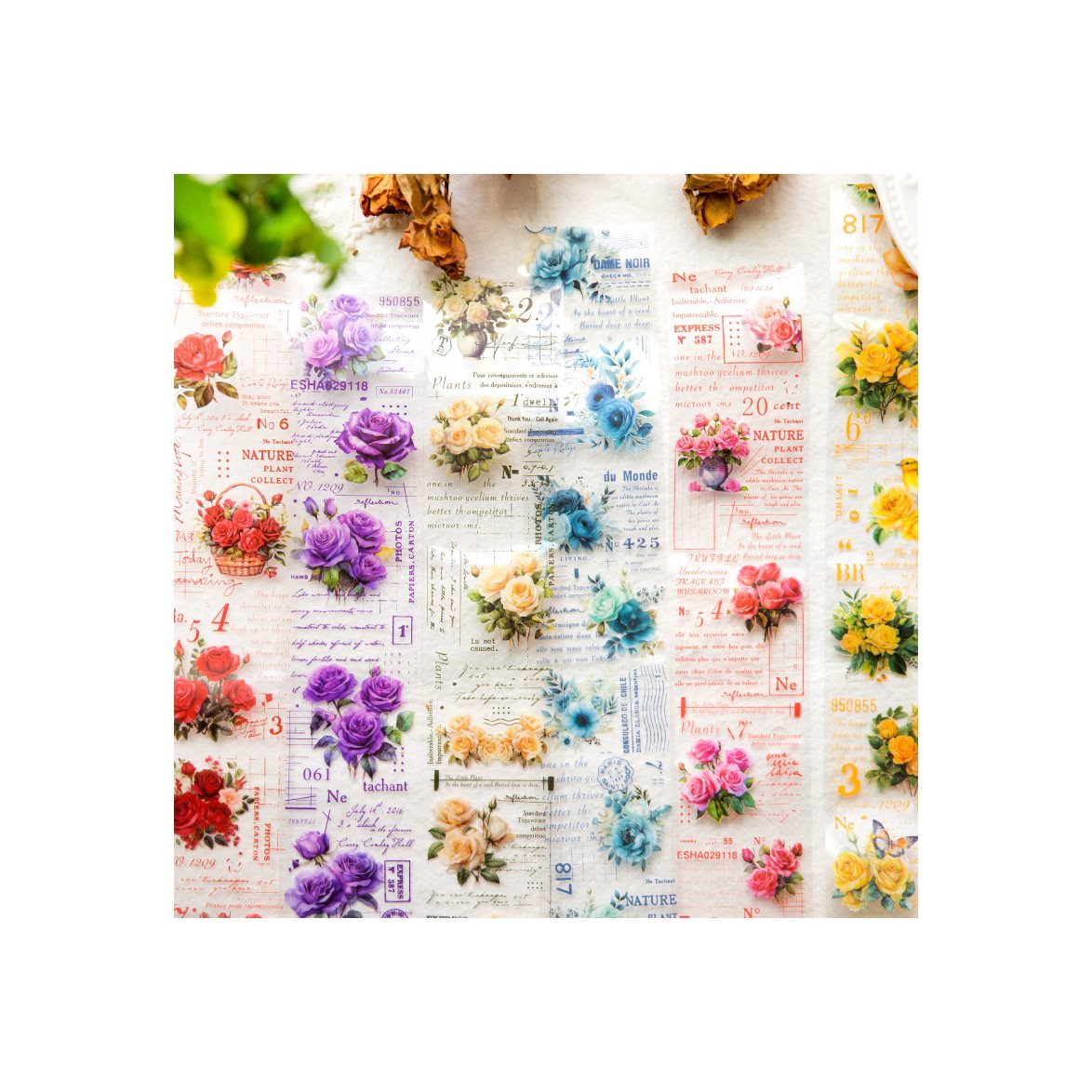 Dekorativa bård av texter och röda blommor på rulle. Perfekta för scrapbooking, journaling, kort och presentinslagning där du vill kombinera budskap med en blomstrande detalj. Motiven passar fint i romantiska och vintageinspirerade layouter.