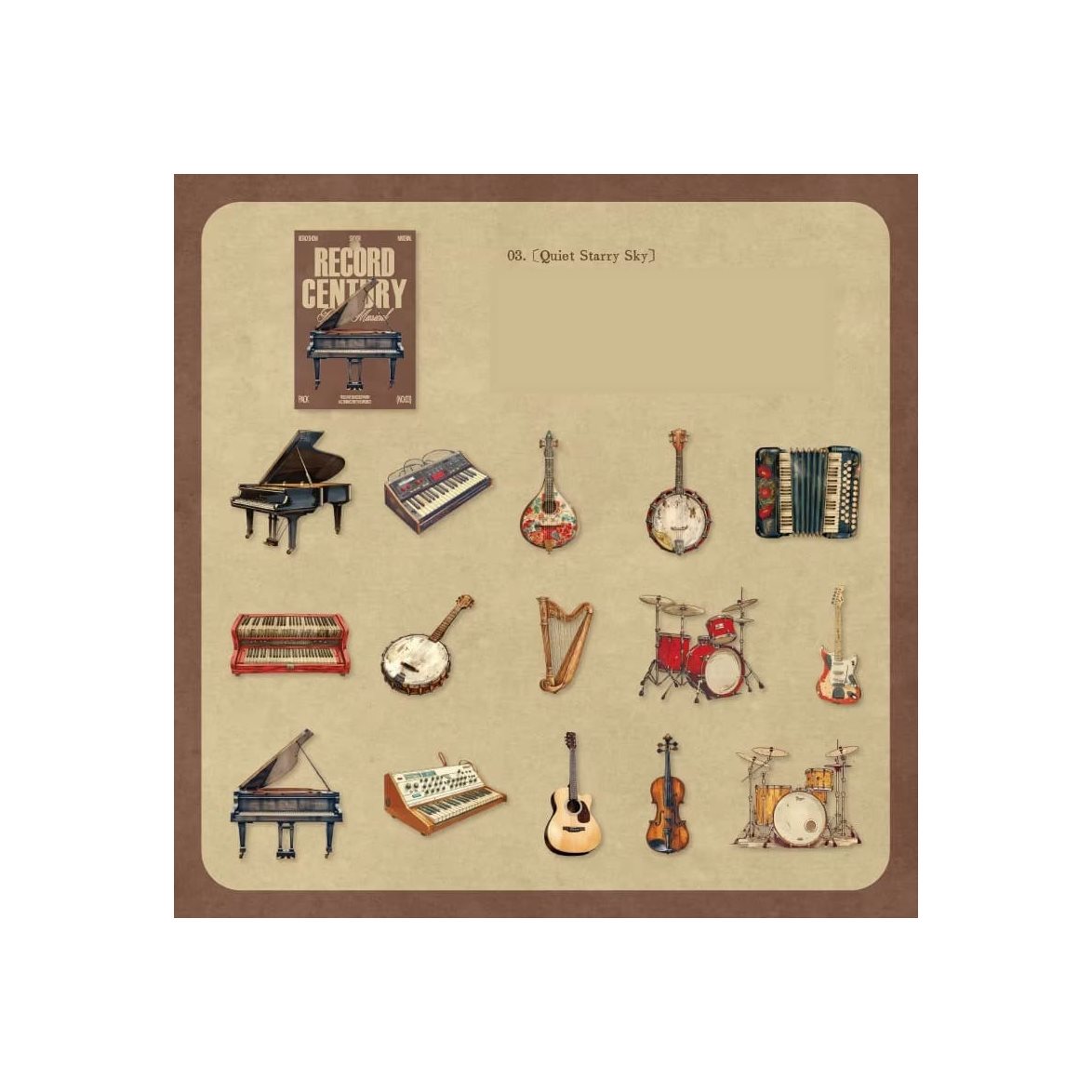 Ett dekorativt set med transparenta stickers med motiv av retro instrument. Perfekta för scrapbooking, journaling, kort och andra kreativa projekt där du vill skapa en nostalgisk känsla med musiktema. Motiven passar fint i layouter med vintage-, 60- eller 70-talsinspiration.