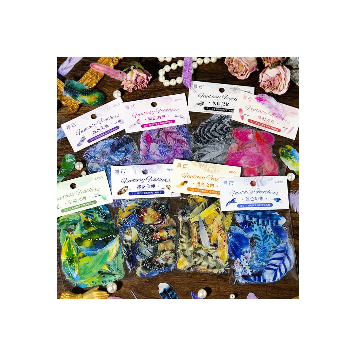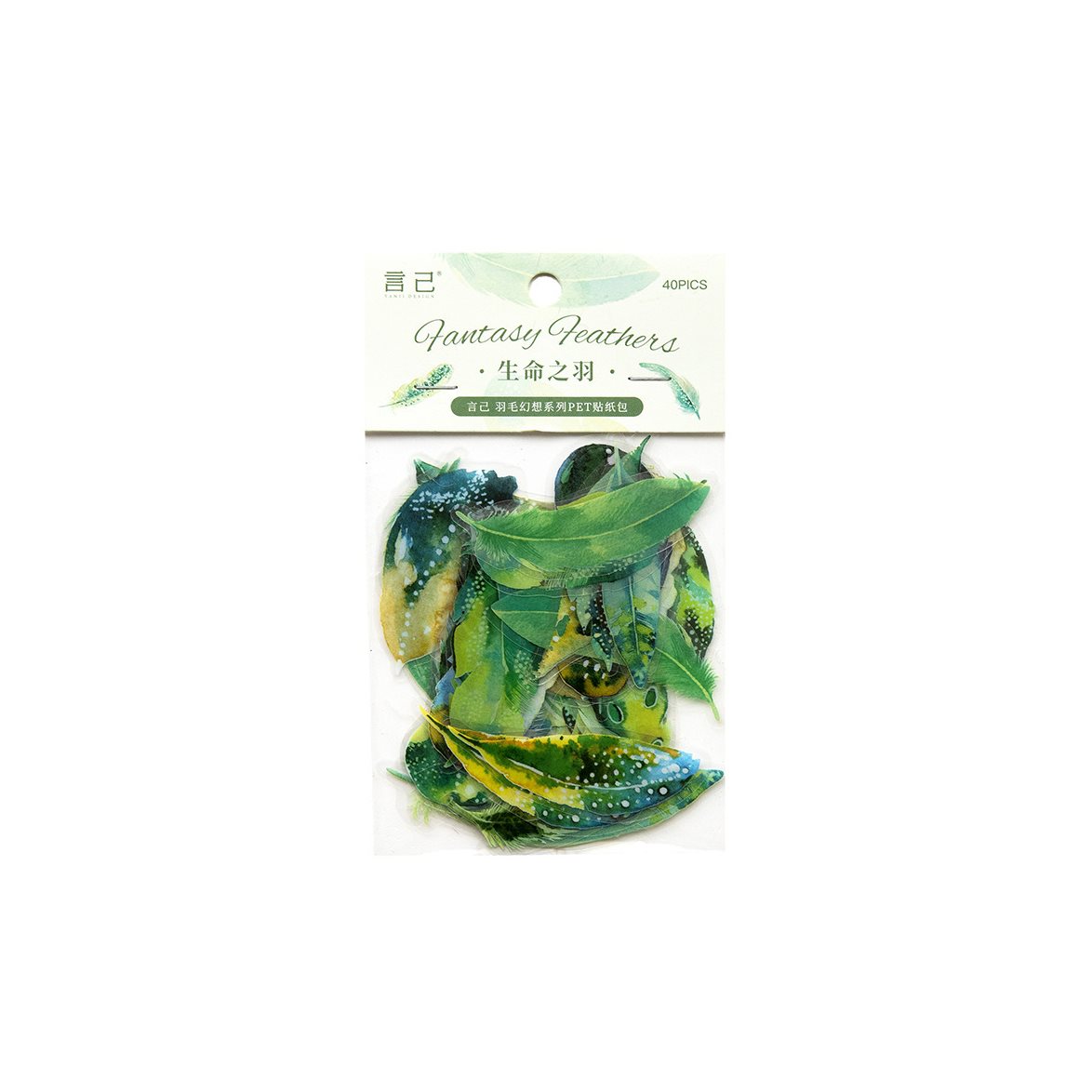 Skapa mjuka, drömmiga detaljer med dessa transparenta stickers i form av fjädrar i gröna nyanser. Perfekta för dig som vill addera en elegant och luftig känsla utan att dölja bakgrunden.