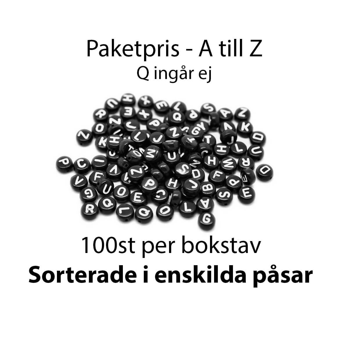 Svarta pärlor med vita bokstäver till ett förmånligt paketpris.