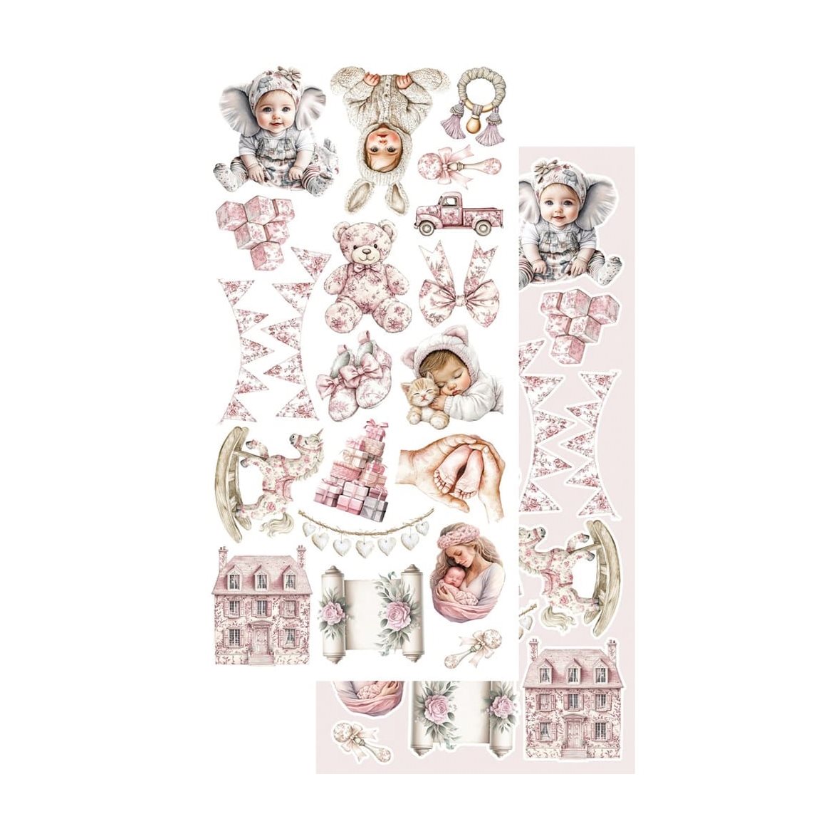12st klippark som tillhör serien Baby Girl med urgulliga babymotiv. Setet innehåller 12 dubbelsidiga ark plus en bonussida.