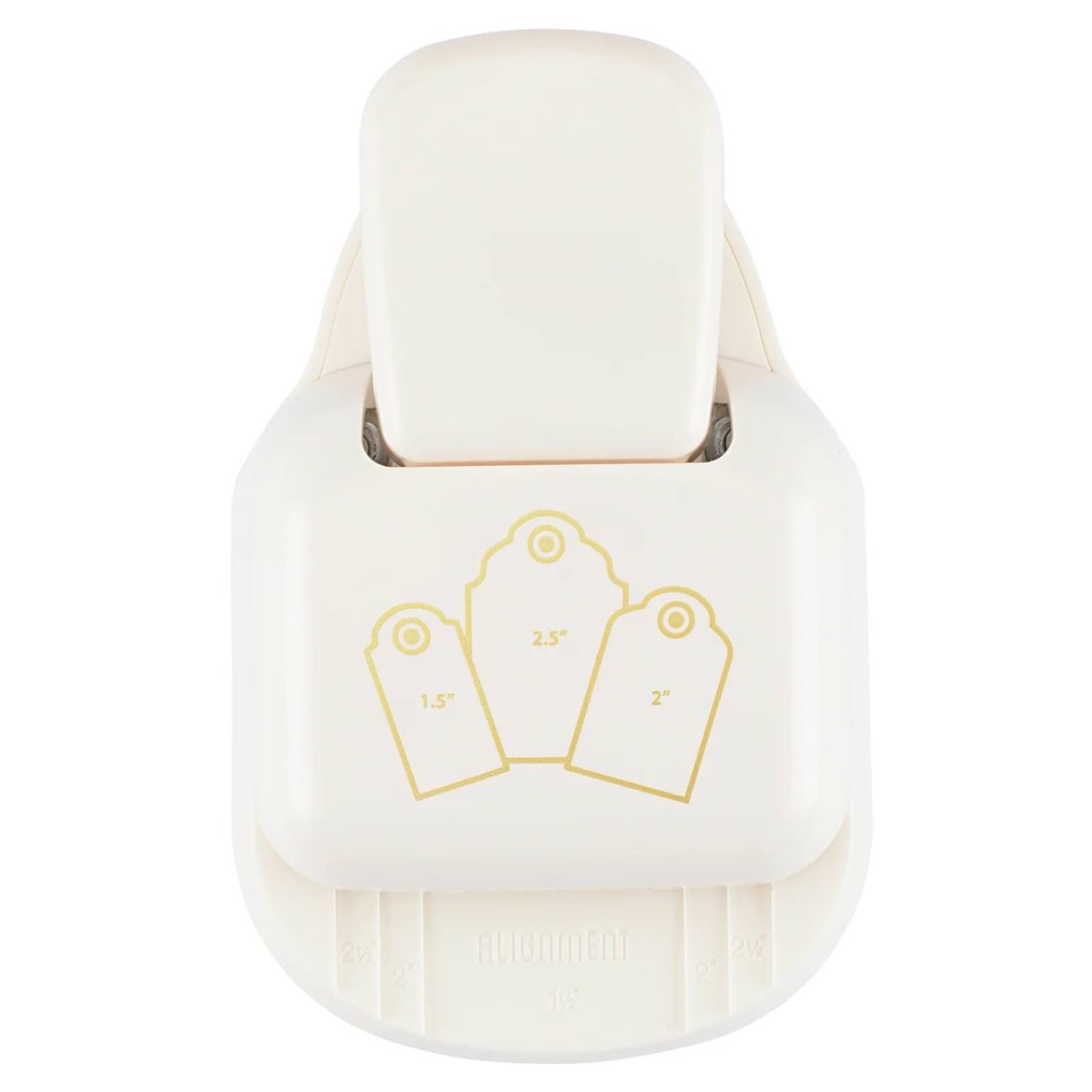 Med denna 3-i-1 tagstans skapar du enkelt fina etiketter och tags med vågkant i tre olika storlekar. Stansa små tags (3,81cm), mellanstora (5,08cm) eller stora (6,35cm) och välj själv längden på etiketten. Perfekt till presenttags, etiketter till förvaringsburkar, kort, scrapbook-sidor, dekorationer och andra papperspyssel.