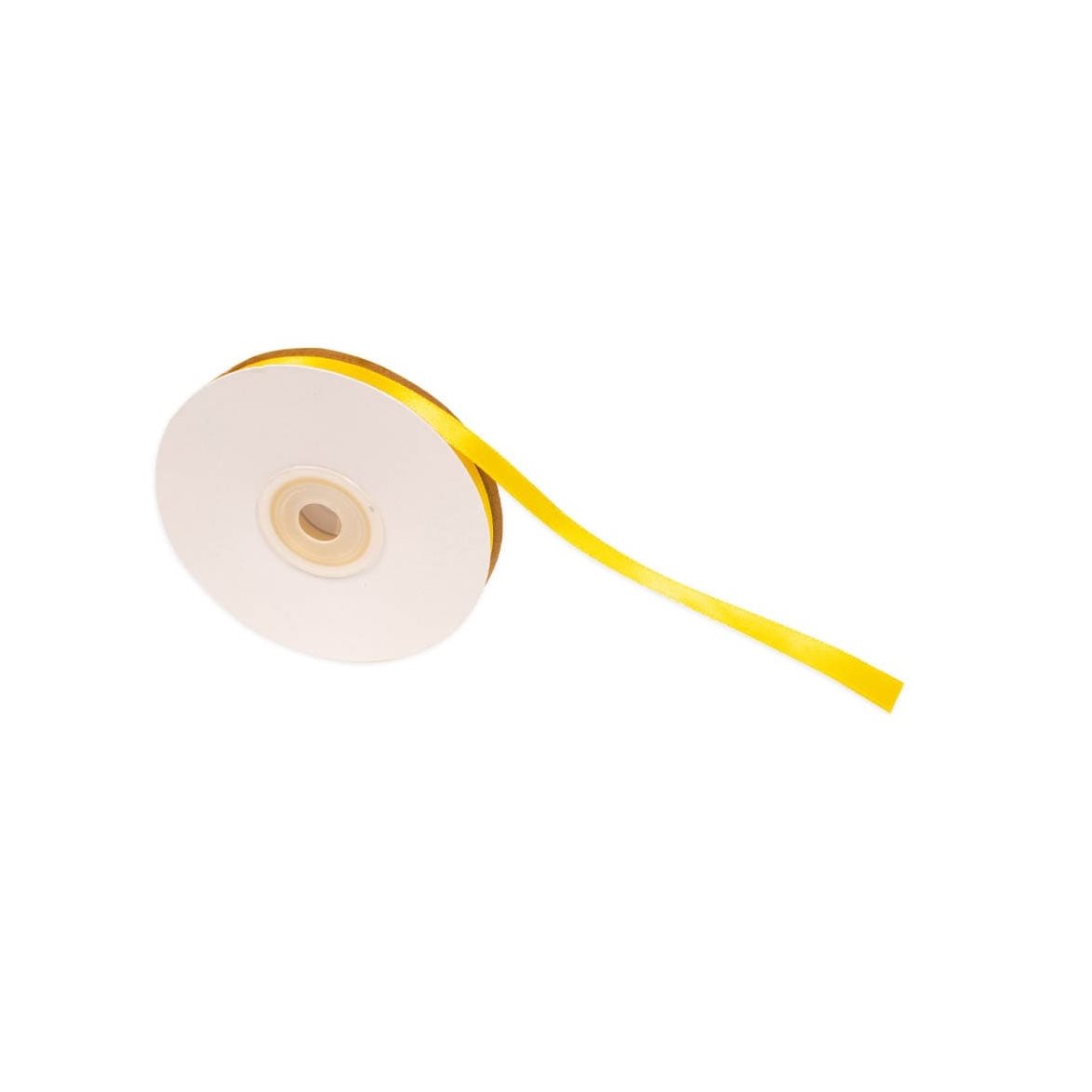 En rulle med gult satinband. Passar utmärkt till många olika typer av pyssel. Dekorera paket och presenter, kort, scrapbookingalbum, håruppsättningar, ballonger, presentaskar, blomsterarrangemang mm.