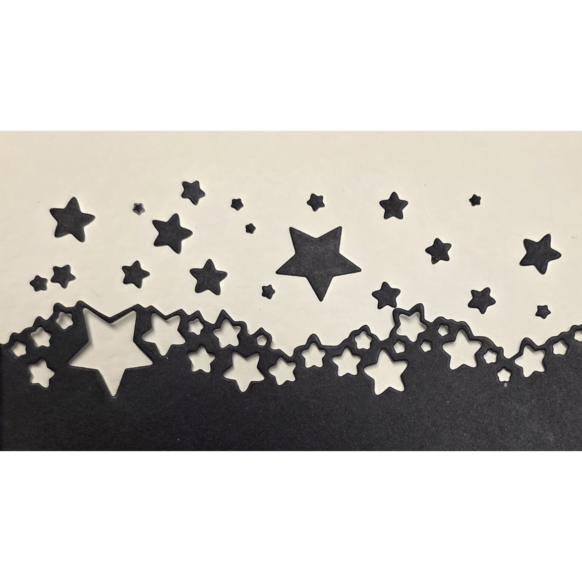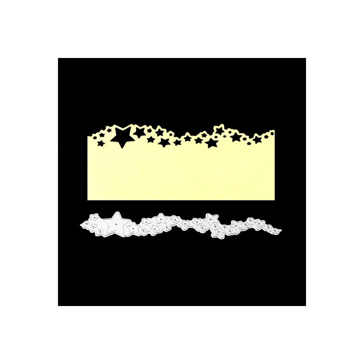 Med den här dien skär du enkelt ut en fin bård med stjärnor. Ena kanten skär ut medan den andra inte skär ut, så att du kan dekorera kanten på ett kort eller papper.