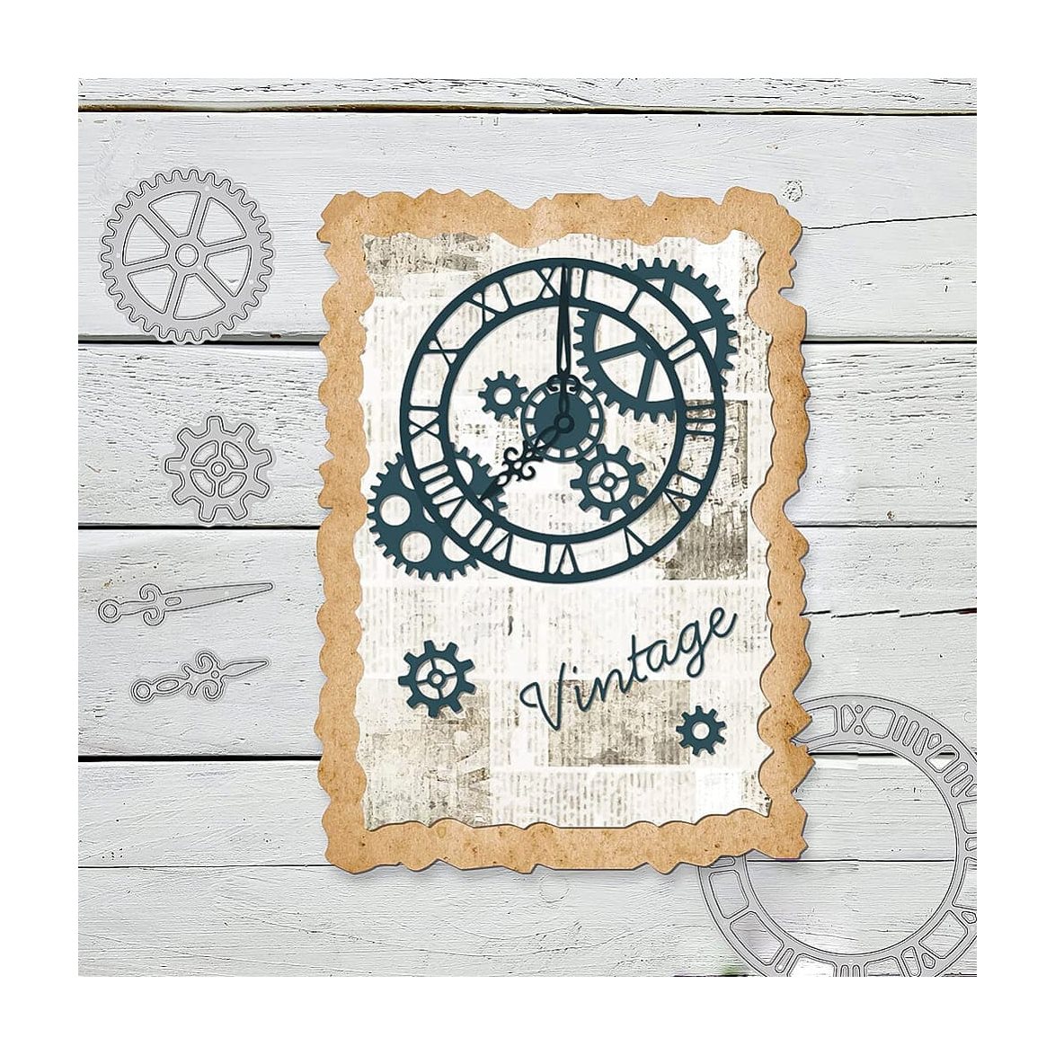 Med detta die-set kan du skära ut kugghjul, klocka samt tillhörande ramar. Tidlöst, kreativt och alldeles oemotståndligt.