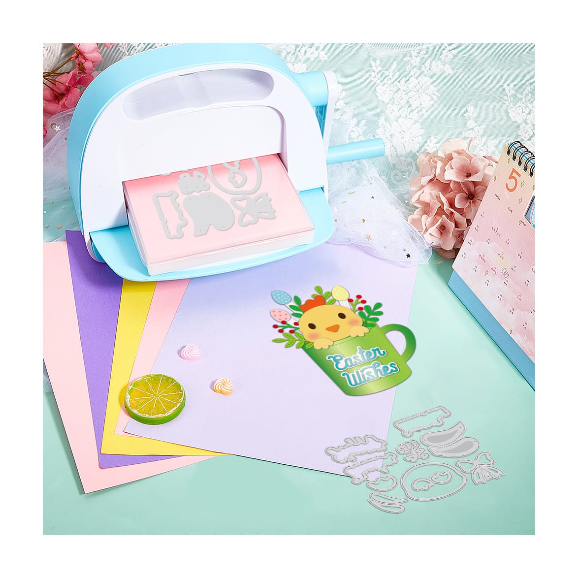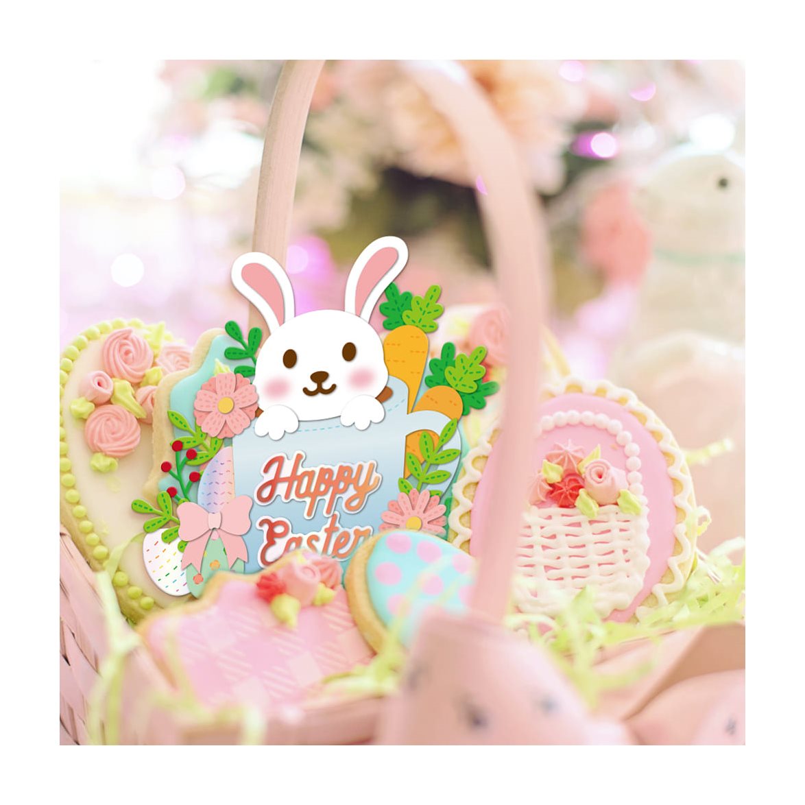 Ett set med dies som skär ut en charmig kopp med urgulliga djur som kikar fram samt texterna "Easter Wishes" och "Happy Easter"– perfekt för att skapa varma och personliga detaljer på kort, etiketter och scrapbookinglayouter.