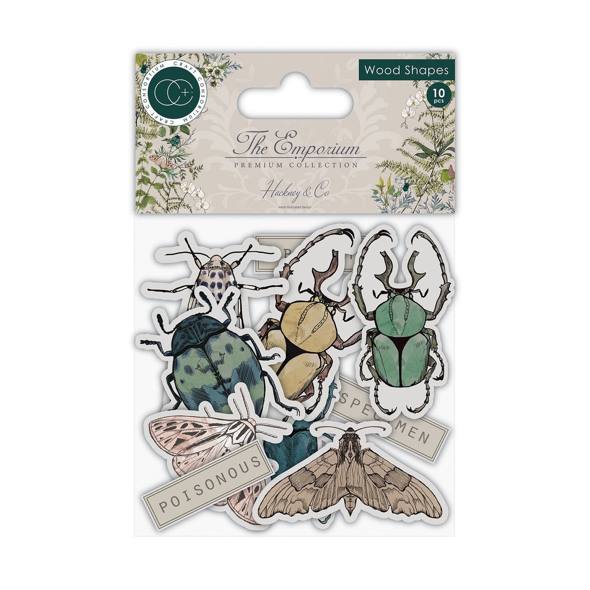 Dekorationer i trä med de underbara motiven från kollektionen The Emporium. Dekorationerna är målade på ena sidan och vita på baksidan.