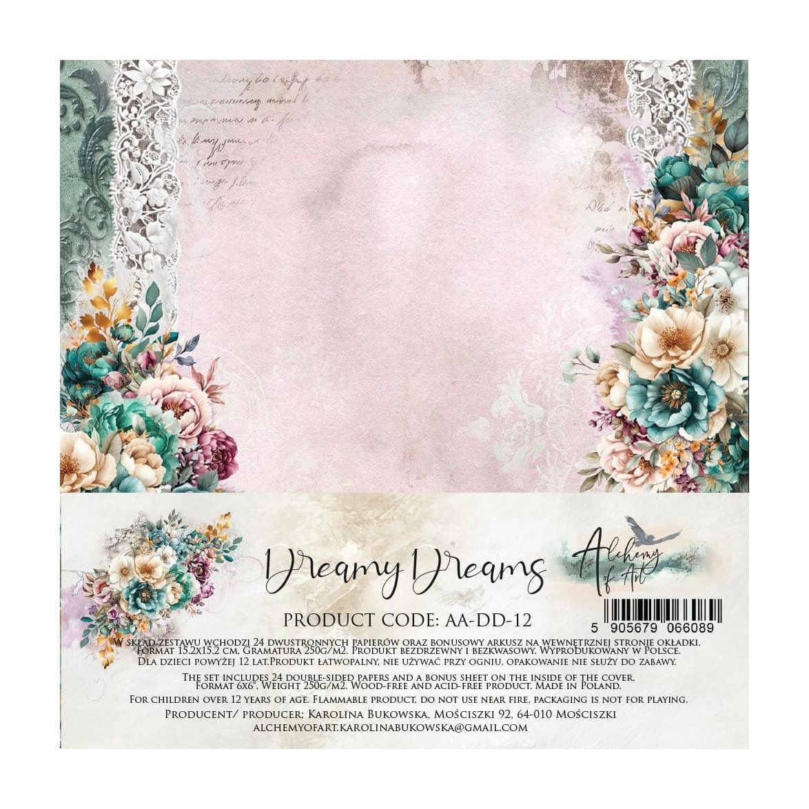 Scrapbookingpapper i storleken 15x15cm från Art Alchemy. Här får du hela kollektionen Dreamy Dreams som består av läckert mönstrade papper i dova pastelltoner.