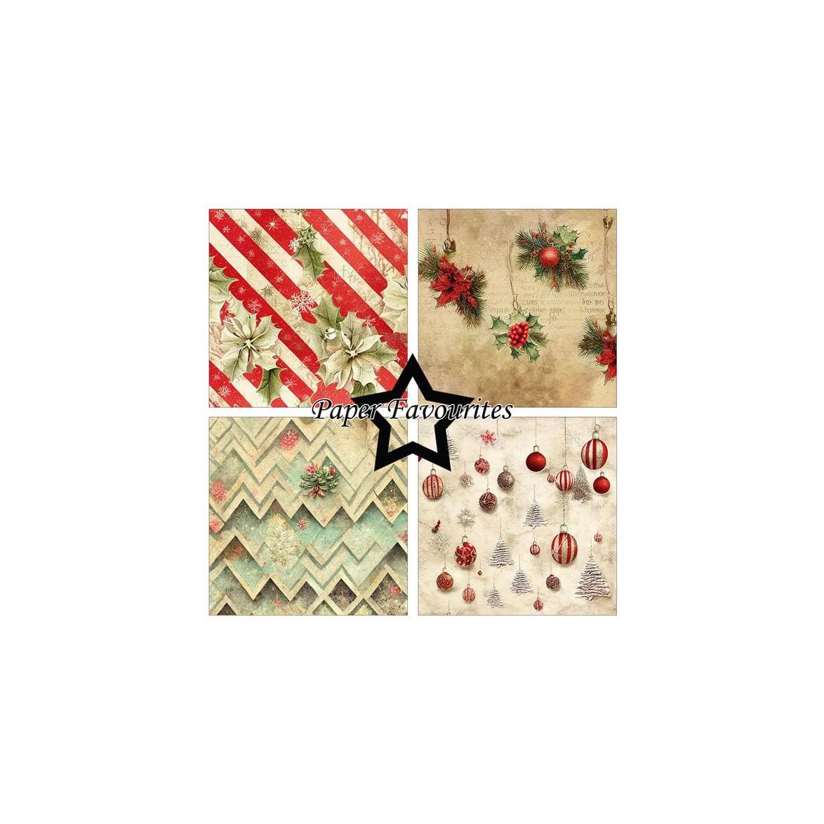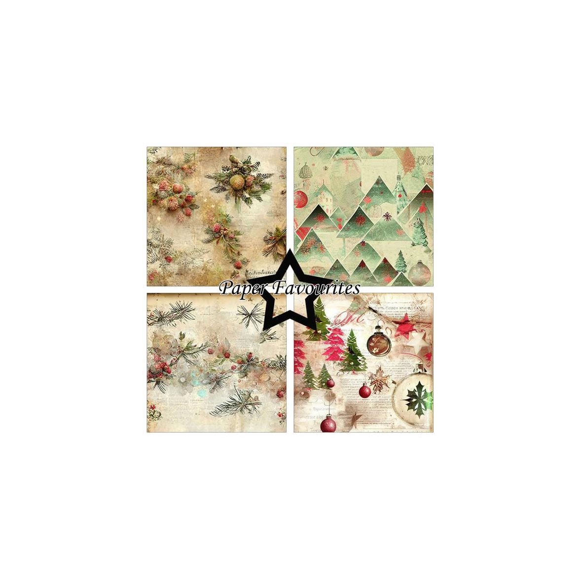 Stämningsfulla, mönstrade papper med juliga motiv. Perfekt för att skapa julkort, tags, eller dekorationer med en magisk julkänsla.