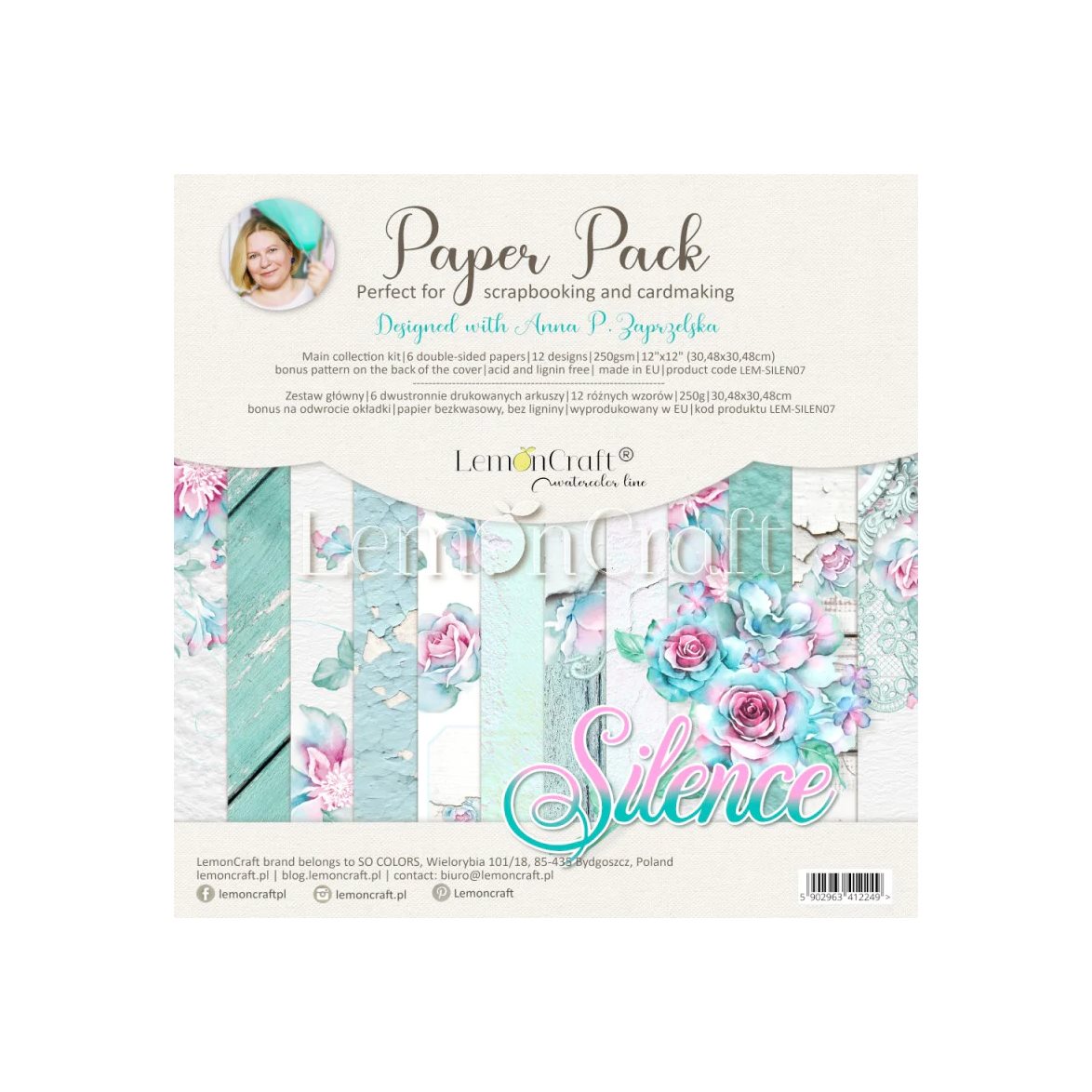 Scrapbookingpapper i storleken 30x30cm från Lemon Craft. Här får du hela kollektionen Silence som består av underbara, mönstrade papper i grönt och rosa.
