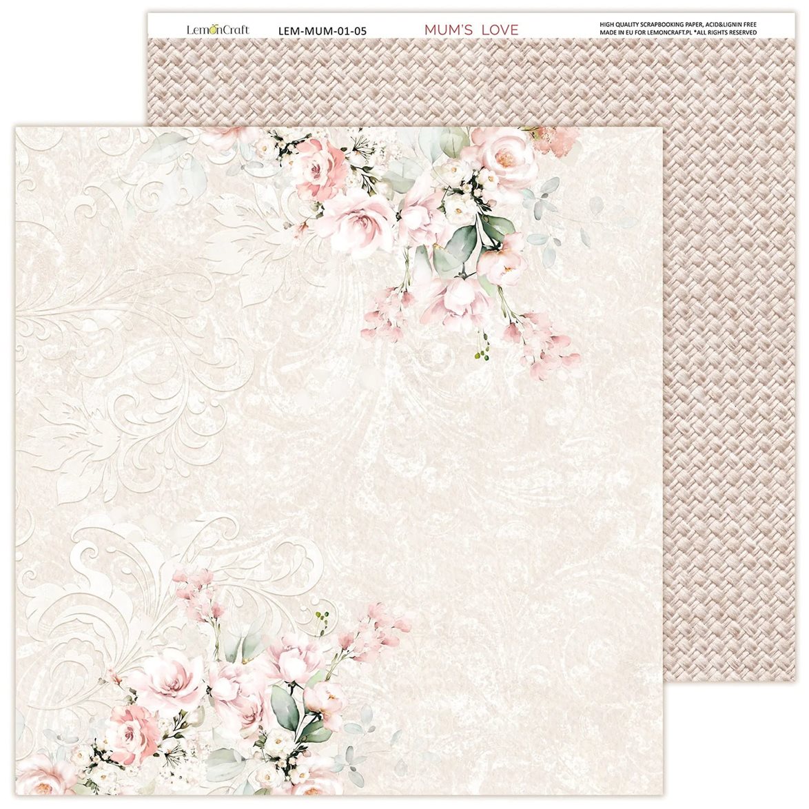 Scrapbookingpapper i storleken 30x30cm från Lemon Craft. Här får du hela kollektionen Mums Love som består av underbara, mönstrade papper dekorerade med rosa blommor.
