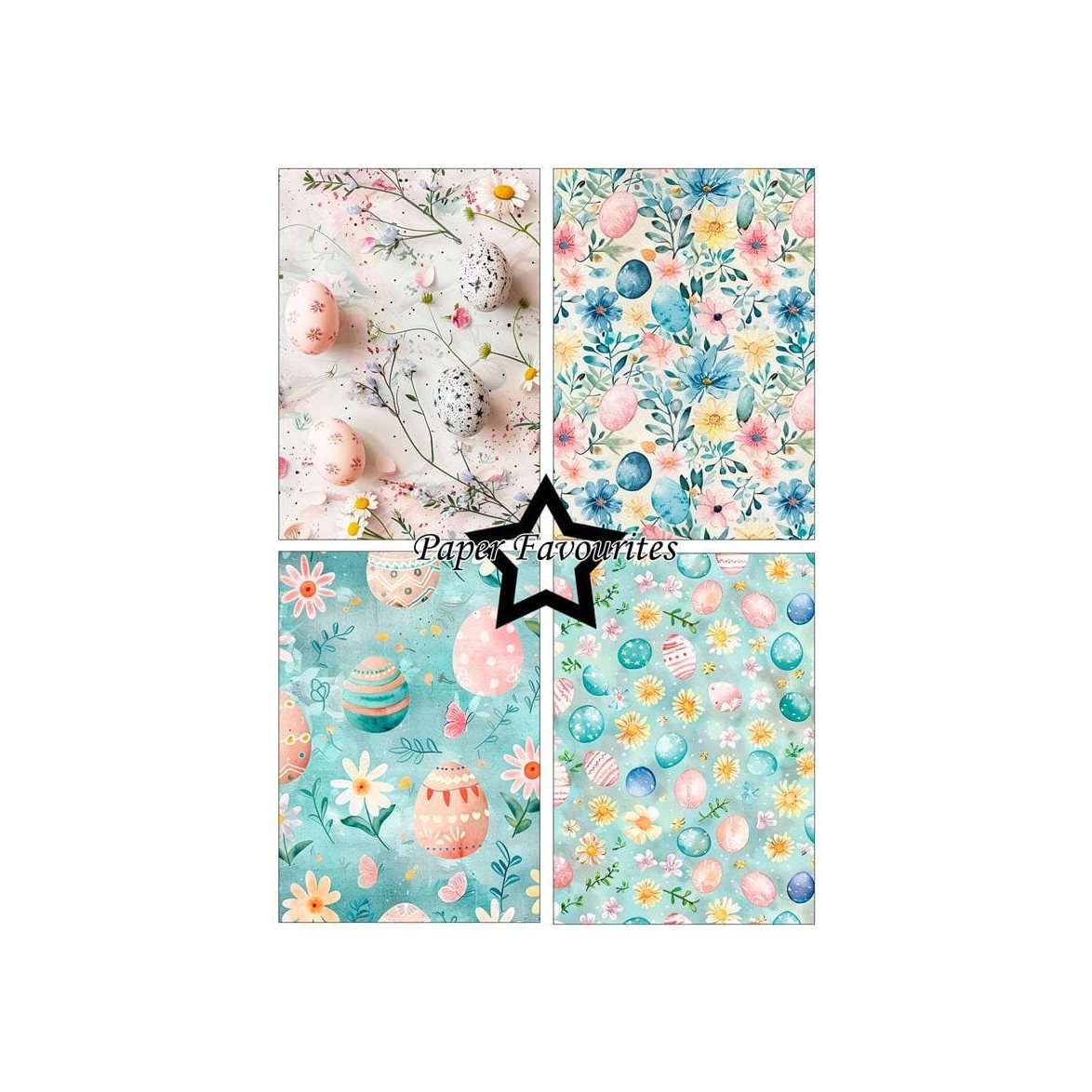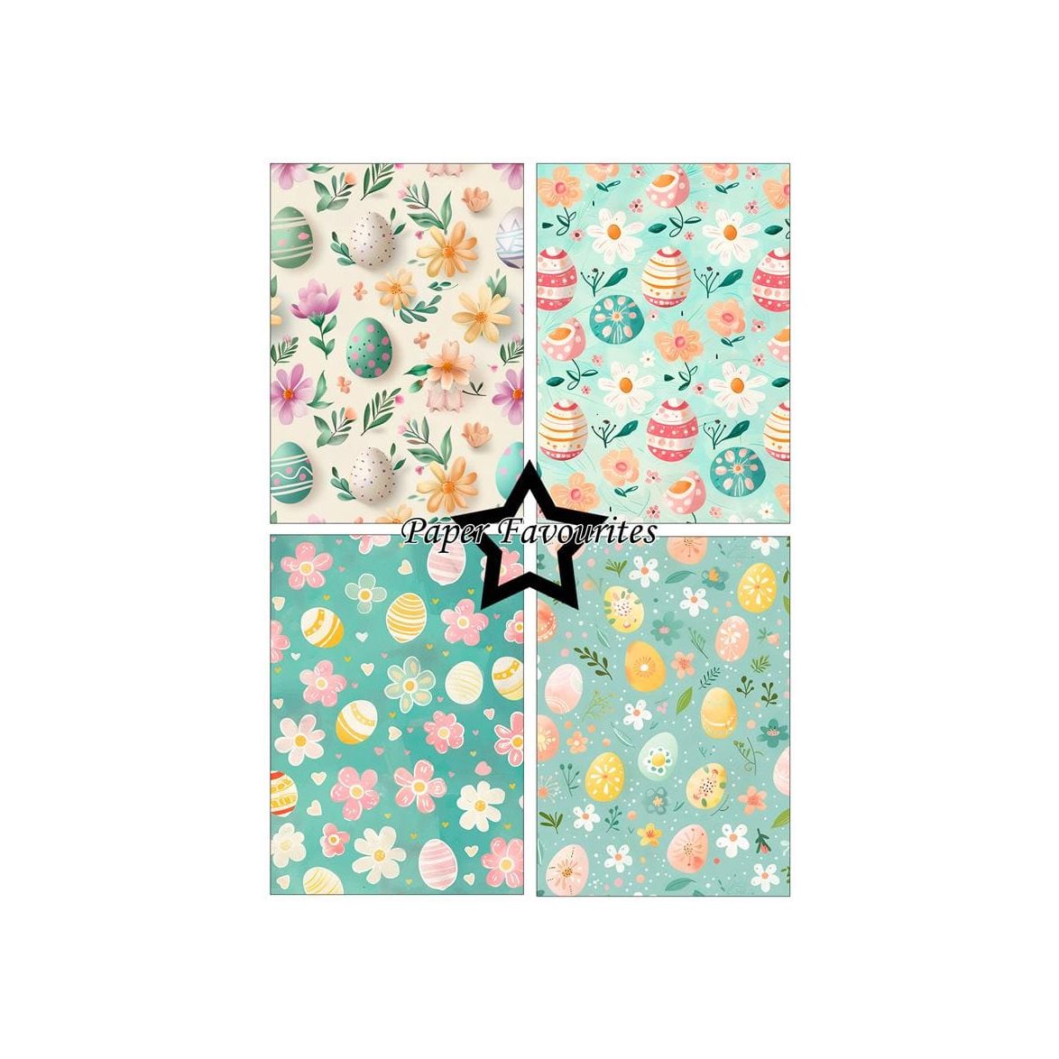 Mönstrade papper med målade påskägg som passar utmärkt till många olika typer av påskpyssel.