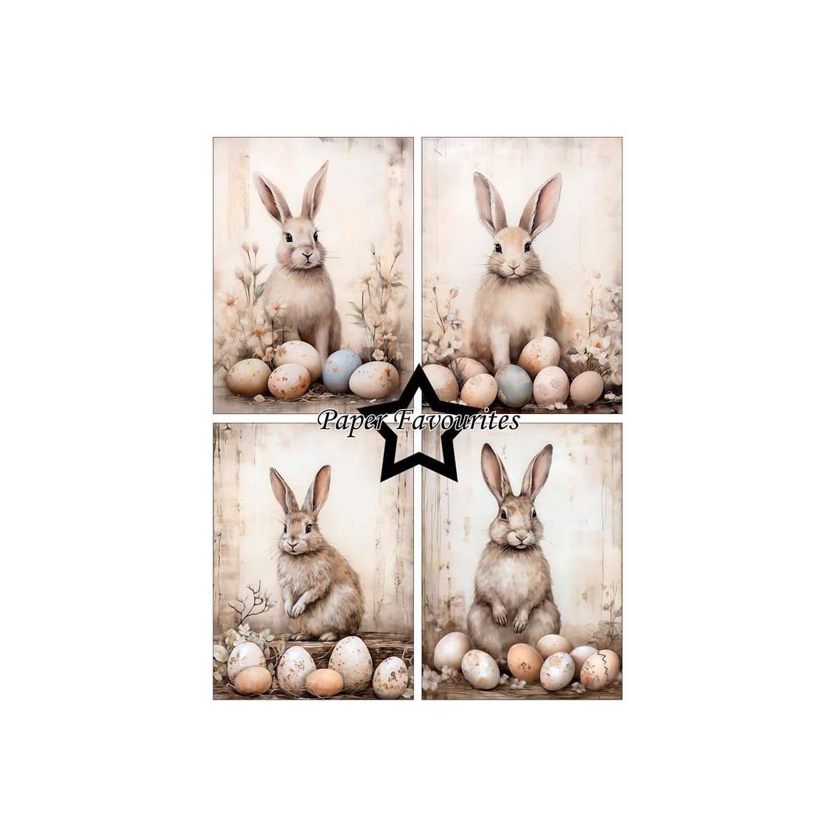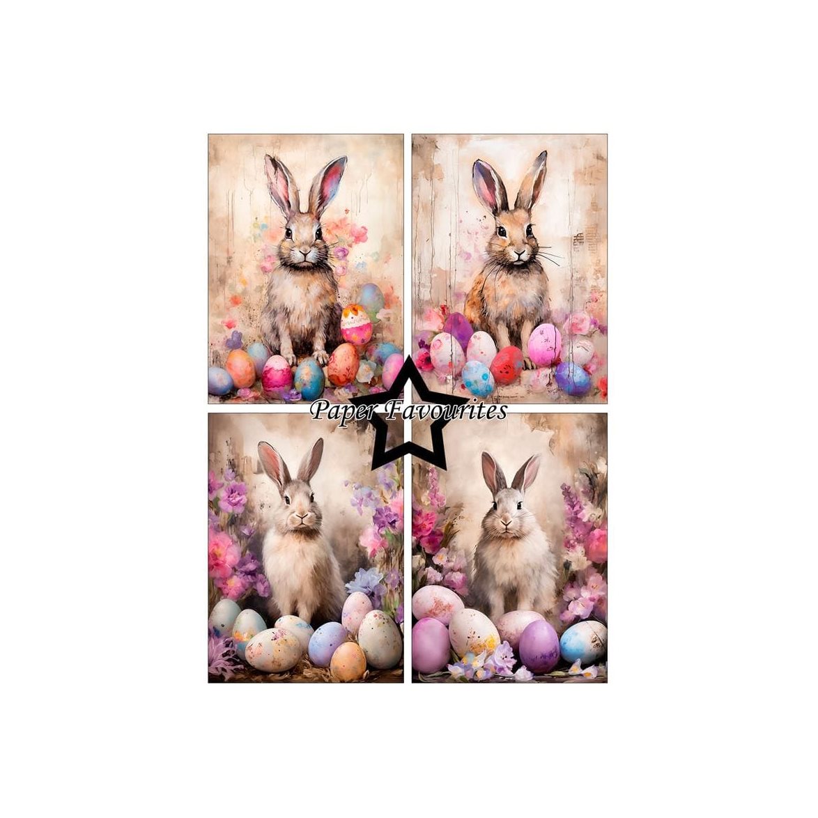 Pappersblock med ljuvliga påskharar med påskägg. Perfekt för att skapa påskkort, tags eller små album med en gnutta sötma. Det är ett motiv / sida.