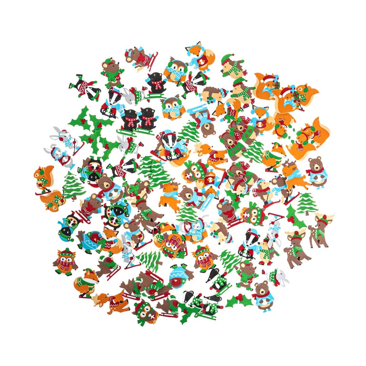 120st foamstickers med olika, vintriga djur samt granar. Passar utmärkt till många olika typer av pyssel.