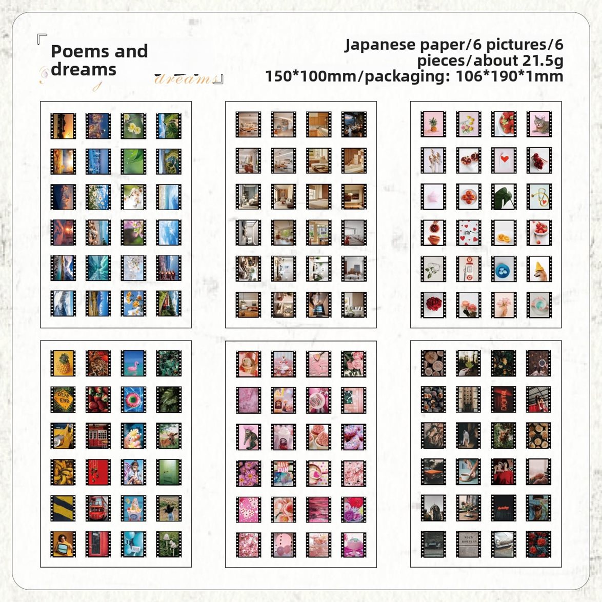Här får du 6st ark med vackra stickers gjorda av tunt papper. Passar utmärkt för att dekorera kort, album, bullet journal med mera.