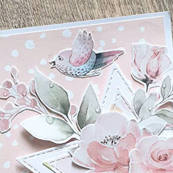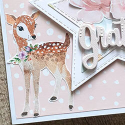 Ett gulligt grattiskort med utklippta dekorationer från pappersblocket magical forest. Alla produkter som använts finns listade nedan.
