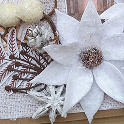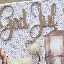 Ett julkort i naturnära färger, med ett bakgrundspaper som liknar juteväv skapar man en lite mer rustik känsla. Alla produkter som använts finns listade nedan.