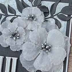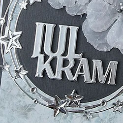 Ett frostigt julkort i grått, blått och silver med en julkramshälsning. Alla produkter som använts finns listade nedan.