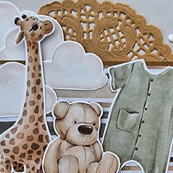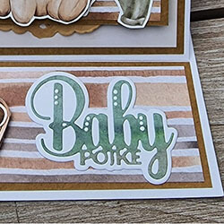 Ett staflikort i grönt och naturfärgad kartong till en liten babypojke. Alla produkter som använts finns listade nedan.