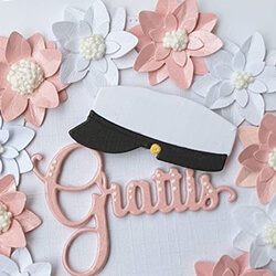 Studentkort i rosa och vitt